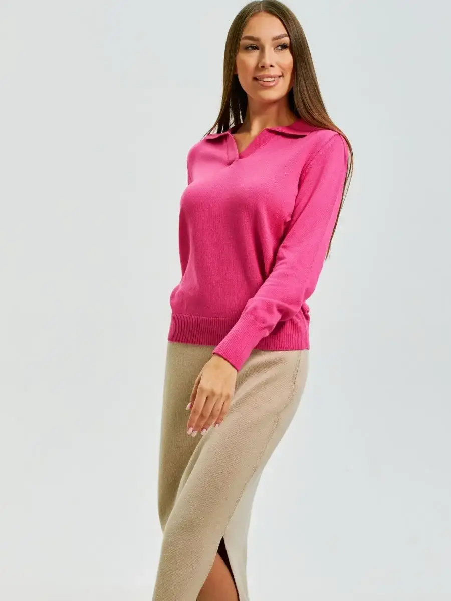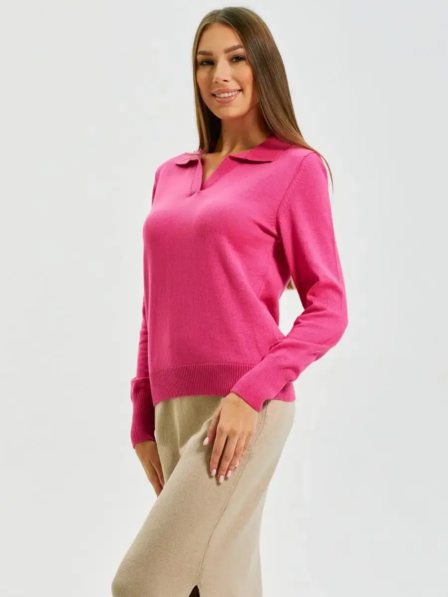 Женский хлопковый джемпер-поло MODCLICK. Классический отложной воротник в сочетании с V-образным вырезом без пуговиц. Джемпер который можно отнести к разным стилям в одежде. Если одеть в классической юбкой, которую вы можете подобрать в комплект в нашем магазине, то вы легко впишетесь в классический стиль и будете удобно себя чувствовать и в офисе, и на деловой встрече, и на вечерней прогулке по городу. А если одеть джемпер с свободными джинсами или брюками, то вы вольетесь в стиль большого города. Богатая цветовая гамма позволит вам сделать выбор. Первый шаг за вами, а мы сделаем в свою очередь все возможное, чтобы вы не пожалели о выборе изделий нашего бренда. Проверяйте товар при получении, мы не можем контролировать качество упаковки и аккуратность примерки от предыдущего покупателя, а также не в силах повлиять на срок и качество доставки, пожалуйста не снижайте за это оценку, а напишите в службу поддержки.