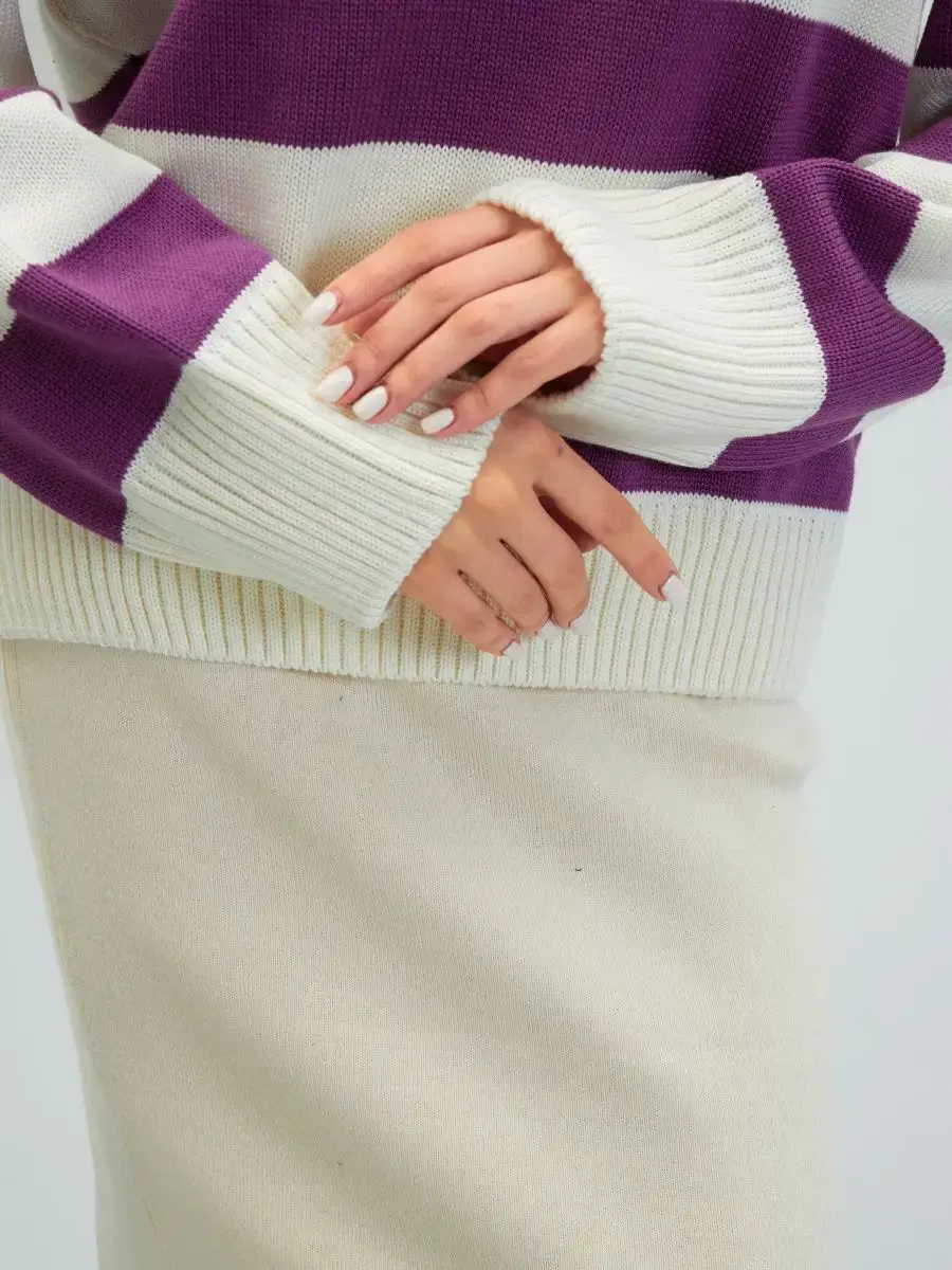 Представляю вам наш самый модный и стильный джемпер в полоску вязаный MODCLICK! Эта идеальная кофта оверсайз размера подойдет для женщин любого возраста и фигуры высокого и не высокого раста. Свитер в полоску станет отличным подарком для нового года, дня рождения или любого другого праздника. Джемпер вязаный изготовлен из высококачественного материала мягкого хлопкового трикотажа. Свитер вязаный в полоску, стильный и удлиненный свитер, который станет ярким акцентом в вашем гардеробе. Черно-белая полоска придаст вашему образу особый шарм, яркое сочетание разных полос подойдет для создания любого образа. Лонгслив женский подходит как для повседневного образа, так и для нарядного. Кофта женская прекрасно сочетается с джинсами, юбками или классическими брюками. Благодаря своему универсальному дизайну, вы можете носить ее на работу, в университет или прогулку. Джемпер хлопковый имеет длинный рукав, прекрасно сидит по фигуре и создает комфортное ощущение. Он выполнен гладкой вязкой "кулир" в оверсайз крое, что придает модель современный трендовый вид. Этот свитер-джемпер отлично подойдет также беременным женщинам, девушкам-подросткам и девочкам. Кардиган женский идеально сшит и обеспечивает максимальный комфорт. Это не просто одежда, это настоящий трендовый и стильный аксессуар! Присоединяйтесь к модным тенденциям и приобретите этот шикарный джемпер прямо сейчас. Наш бренд гарантирует высокое качество и приятные ощущения от носки. Не упустите возможность обновить свой гардероб новым и модным свитером. Покупайте сейчас, чтобы выглядеть стильно и привлекательно каждый день! Для более долговечного пользования соблюдайте пожалуйста правило ухода за вязанными изделиями.