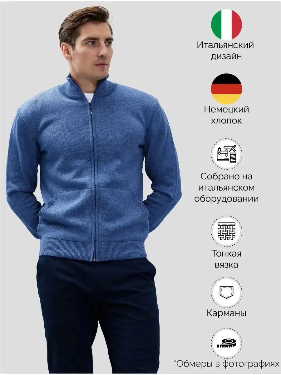 Мужской кардиган на молнии с карманами кенгуру. Классический стиль плавно пересекается со спортивным. Отлично подойдет к джинсам и брюкам! Карманы большие, так порой необходимы для ключей и телефона. Отлично подойдет для офиса и так же для прогулки по городу. Пряжа хлопок не вызывает дискомфорт и очень приятна к телу. Для летней прохладной погоды и для зимних холодов под куртку. Подходит как подарок мужчине и подростку.