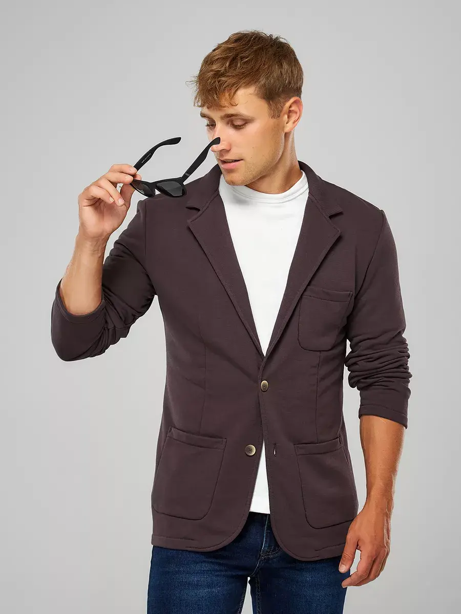 Мы, российские производители, представляем вам нашу новинку — мужской трикотажный пиджак-блейзер с нагрудным карманом и шлицей! Этот пиджак без подкладки выполнен из трикотажа средней плотности. Спинка со шлицей. Он имеет полукруглые накладные карманы и нагрудный карман с лева застёгивается на две пуговицы. Ткань достаточно плотная, чтобы защитить вас от прохлады. Трикотажный пиджак без подкладки отличается от обычного тем, что он более приятен к телу и не сковывает движения. Этот стильный и качественный пиджак подойдёт для любой деловой встречи, выпускного вечера или посещения школы. Он также может стать частью вашего повседневного образа в стиле кэжуал. Этот стиль одежды для повседневного использования отличается удобством и практичностью. Он плавно переходит в стиль большого города и классический стиль. Пожалуйста, проверяйте товар при получении. Мы не можем контролировать качество упаковки, аккуратность примерки от предыдущего покупателя, а также не в силах повлиять на срок и качество доставки. Поэтому не снижайте оценку за это, а напишите нам в службу поддержки. Чтобы не пропустить акции, рекомендуем добавить этот товар в «Избранное».