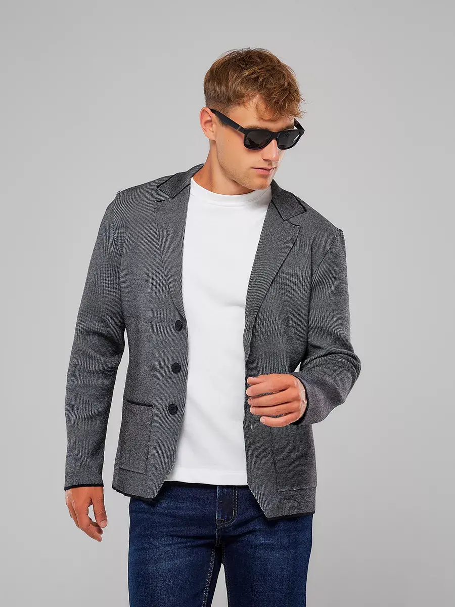 Пиджак выполнен из высококачественного жаккарда и оснащен одним рядом пуговиц. Его конструкция дополнена накладными карманами, что делает его не только стильным, но и практичным. Благодаря своей не плотной вязке, он надежно защищает от холода, создавая атмосферу уюта и комфорта обсолютно не сковывает движение.В отличие от обычных пиджаков, вязаный блейзер приятно прилегает к телу, так как не имеет подкладки. Этот пиджак идеально сочетает в себе высокое качество и стильный дизайн, что делает его подходящим для различных деловых встреч, выпускных вечеров и школьных мероприятий.