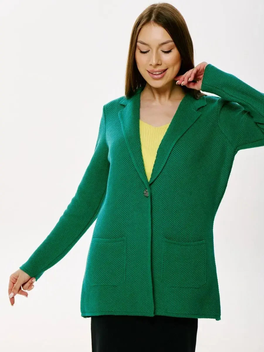 Пиджак женский однобортный на одной пуговице трикотажный, плотной вязки с карманами. Плотная вязка защитит от прохлады. Вязаный пиджак в отличии от обычного приятнее к телу за счет отсутствия подкладки. Деловой стиль, мягко переходящий в стиль большого города, что еще нужно чтобы везде чувствовать себя комфортно. Пряжа, немецкий хлопок, по отзывам клиентов и в ходе испытаний хорошо себя зарекомендовала в плане образования катышков. Проверяйте товар при получении, мы не можем контролировать качество упаковки и аккуратность примерки от предыдущего покупателя, а также не в силах повлиять на срок и качество доставки, пожалуйста не снижайте за это оценку, а напишите в службу поддержки. Цена может меняться в период акций.