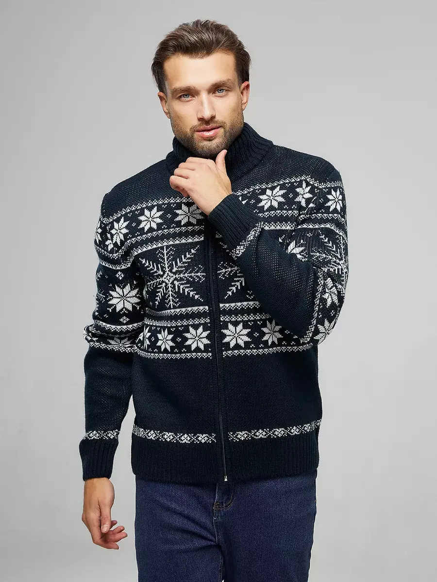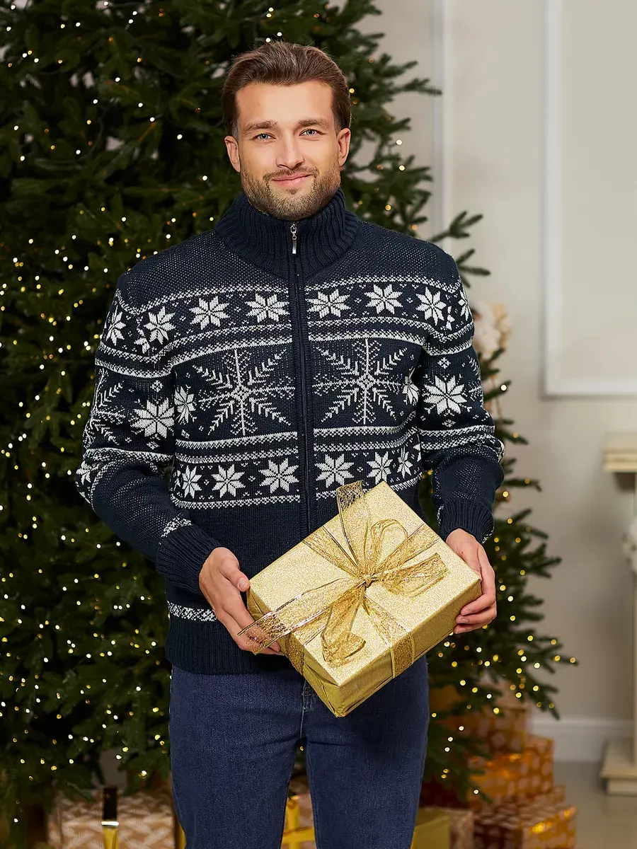 Мужской свитер на молнии MODCLICK с новогодним рисунком