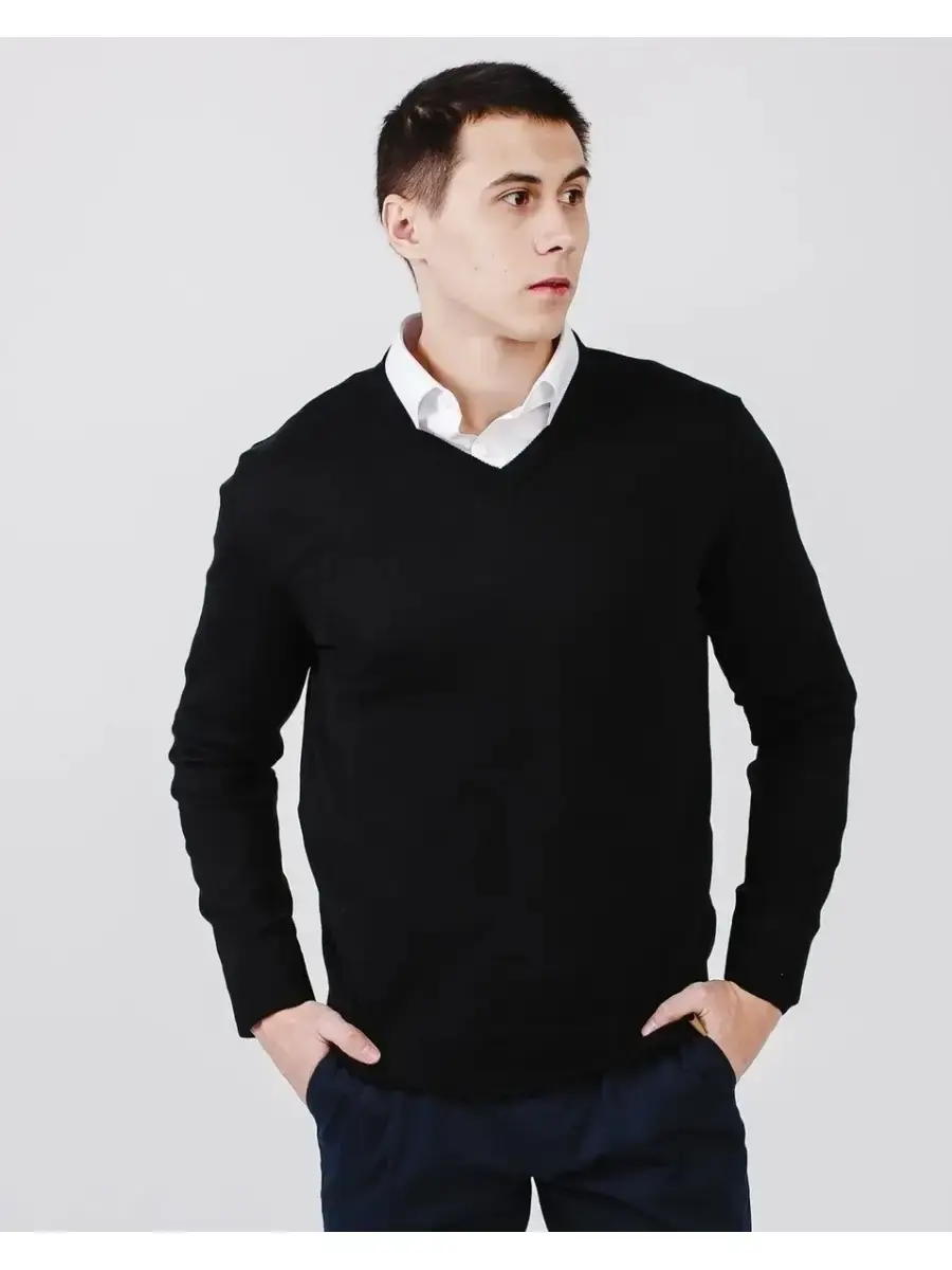 Пуловер мужской, из базовой коллекции MODCLICK. Однотонный, полуприлегающего силуэта, с переходом плеча. Хлопковая пряжа, изготовленная в Германии, хорошо зарекомендовала себя на момент образования катышков. Не вызывает дискомфорт при соприкосновении с кожей. Однотонная классика, никогда не выходящая из моды. Будет комфортно в школе и в офисе, на прогулке и на отдыхе